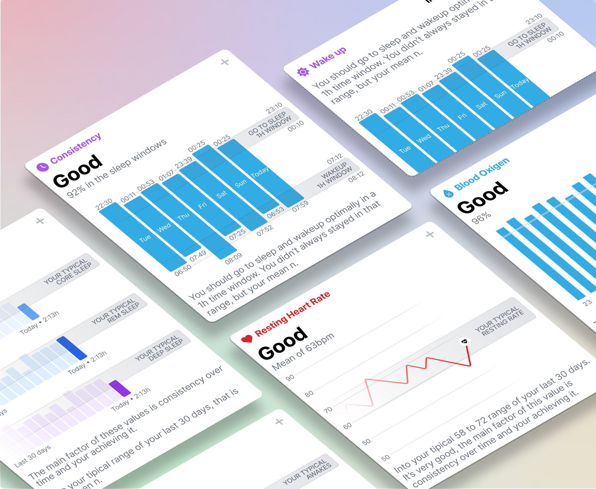 The redesign aimed to make complex sleep data approachable and engaging, presenting a clear, concise overview that quickly communicates key metrics without overwhelming.