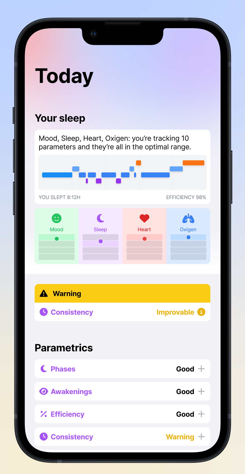 At the same time, it enables deeper exploration, detailed insights and explanations, helping users understand their patterns and make meaningful habit changes.